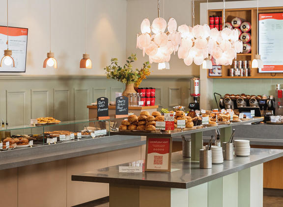 Enjoy healthy, hearty and seasonal bistro-inspired classic dishes at Muriel's Kitchen. Choose from beautifully presented salads, quiches and hot main meals alongside cakes and pastries.