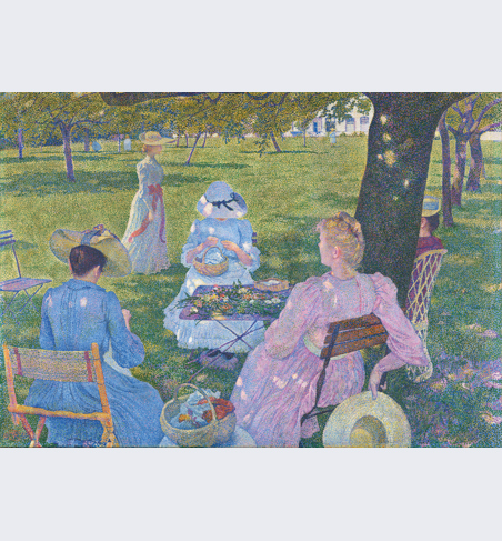 Neo-Impressionists painted in small dots of pure colour. Viewed from a distance, the colours blend to create nuanced tones and an illusion of light. Now known as pointillism, this technique simplified form and played with colour in an entirely new way, verging on the edge of abstraction.